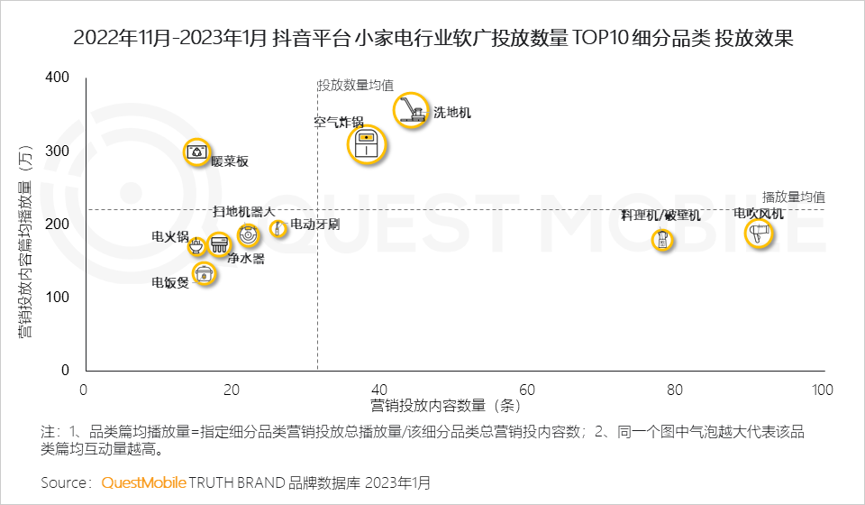 8、综合各项指标来看,洗地机、空气炸锅表现最为强势,热度不减;暖菜板凭借“冬日神器”的渲染成为网红家电,较高的篇均播放量反映出消费者对家电产品的迭代更新保持高关注度和接纳度