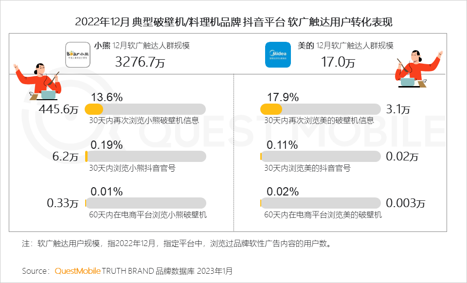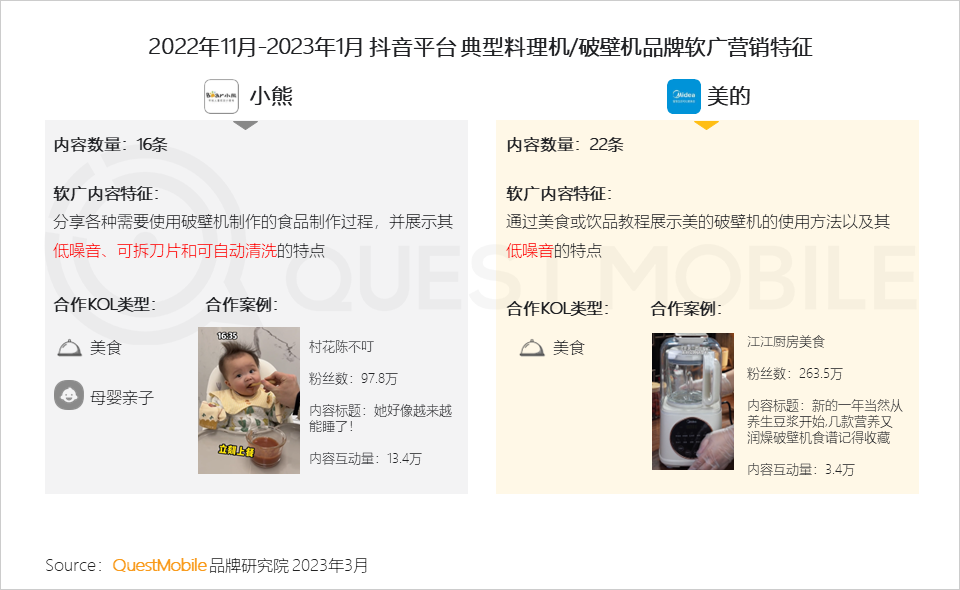 10、2022年12月,抖音平台,小熊软广内容触达超3200万用户,但在电商转化上表现欠佳;美的抖音软广内容,也未在电商平台激起水花
