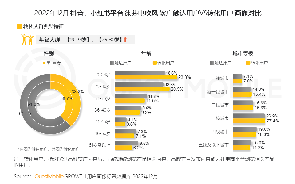 6、徕芬的转化人群以19-30岁为主,这一年龄段作为线上消费主力军,更能为品牌销售的提升贡献力量