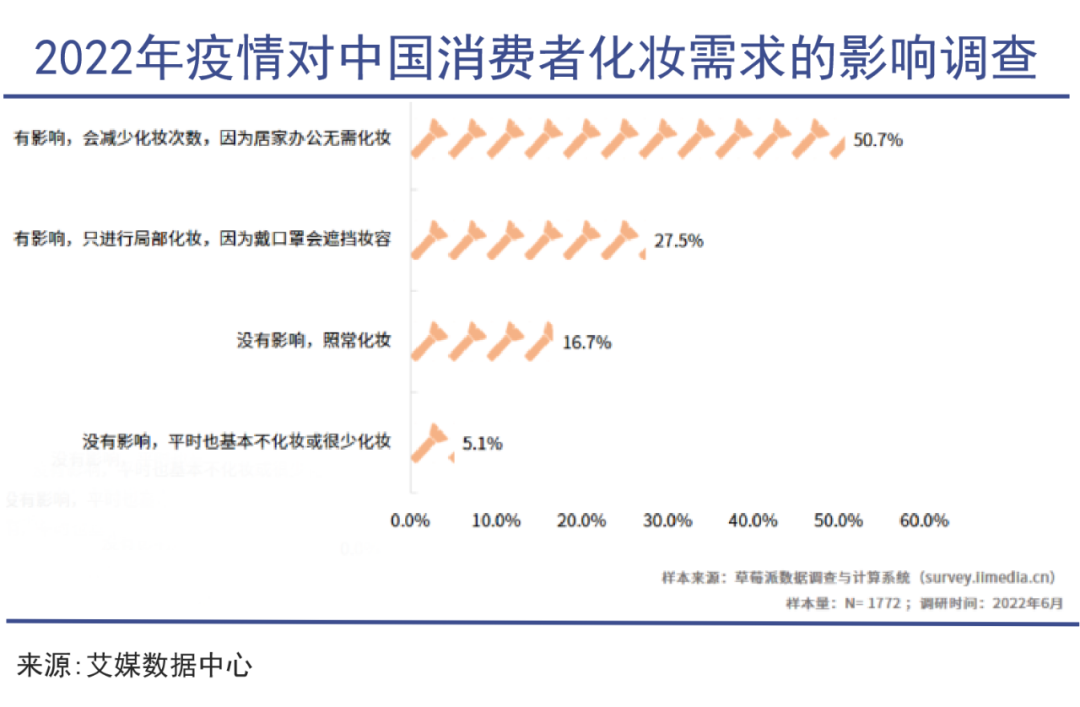 在这种“勤俭持家度过难关”的大环境下,也很难想象中国消费者会将购买口红等美妆视作安抚生活不顺的安慰剂。更何况在疫情和经济下行压力增加的状态下,口红、彩妆等产品的使用场景已经减少,进一步压缩了消费需求。