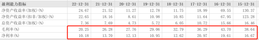 宁德时代财报显示,2022年毛利率为20.25%,净利率为10.18%,这是自2015年至今两项指标的最低值。其中毛利率在2016年43.7%为近年来最高,在2018年以前,毛利率都是超过30%,即便深受疫情影响的2020年2021年毛利率也高达27.76%和26.28%。在毛利率方面2022年同比下跌了6.03个百分点。