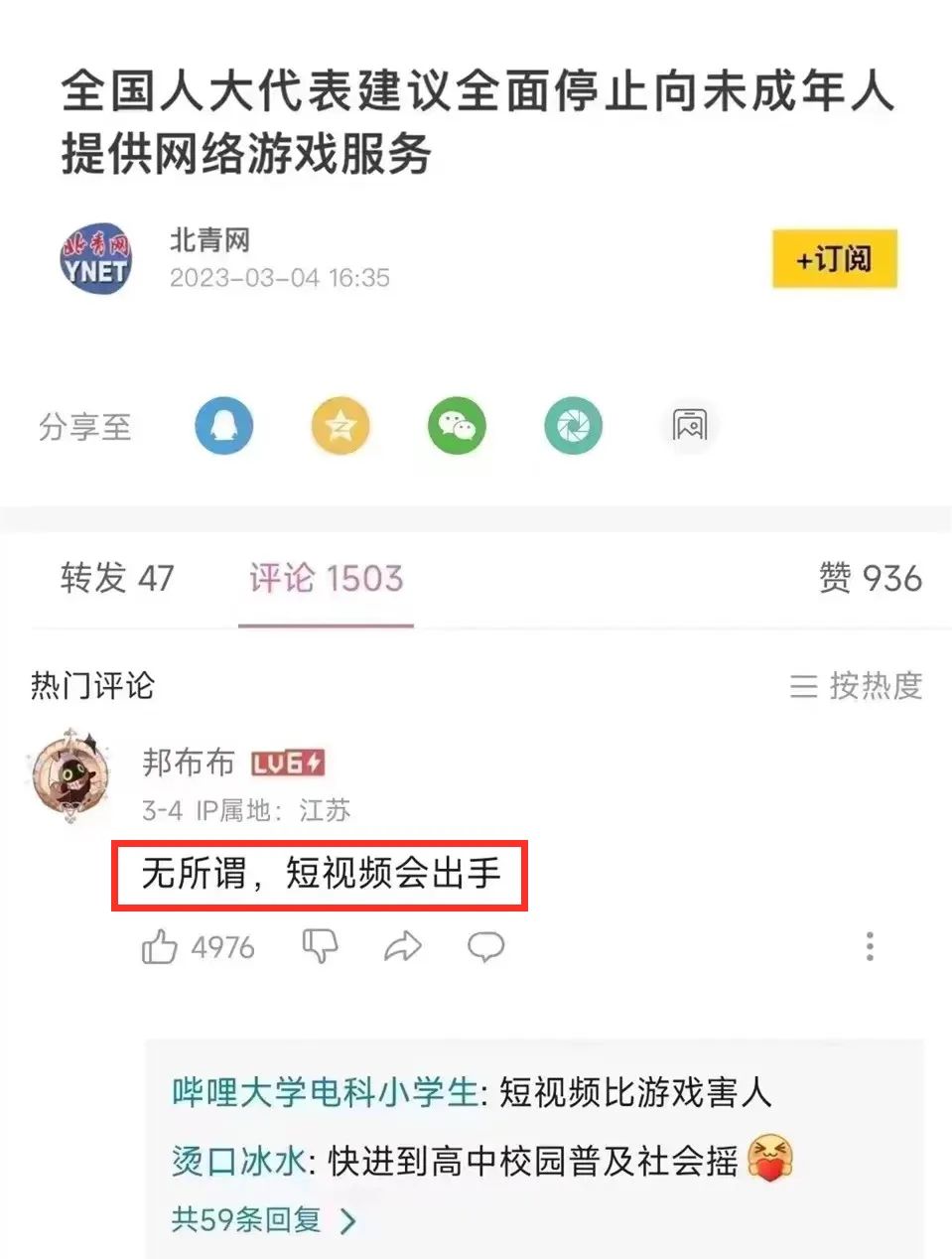 底下的神回复获得高赞,“无所谓,反正短视频会出手”。