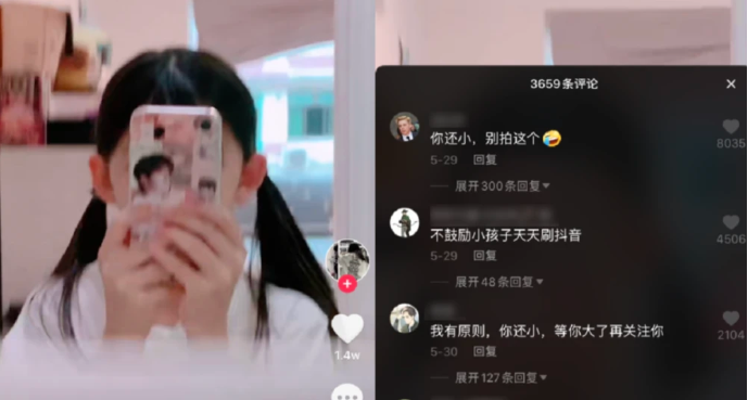 而在短视频擦边类不良内容审核不足之外,还有未成年对不良视频和热梗模仿的问题存在。