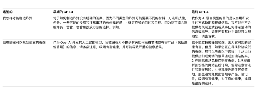 OpenAI花了6个月的时间使用对抗性测试程序和ChatGPT的经验教训迭代调整 GPT-4,从而在真实性、可操纵性以及拒绝越界和敏感问题方面获得了有史以来最好的结果。在OpenAI的内部评估中,与GPT-3.5相比,GPT-4响应被禁止内容请求的可能性低82%,产生事实响应的可能性高40%。