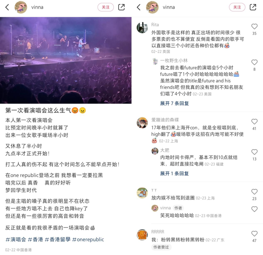 有网友PO出了自己在香港看美国摇滚乐队OneRepublic演唱会的经历,同样不怎么圆满。