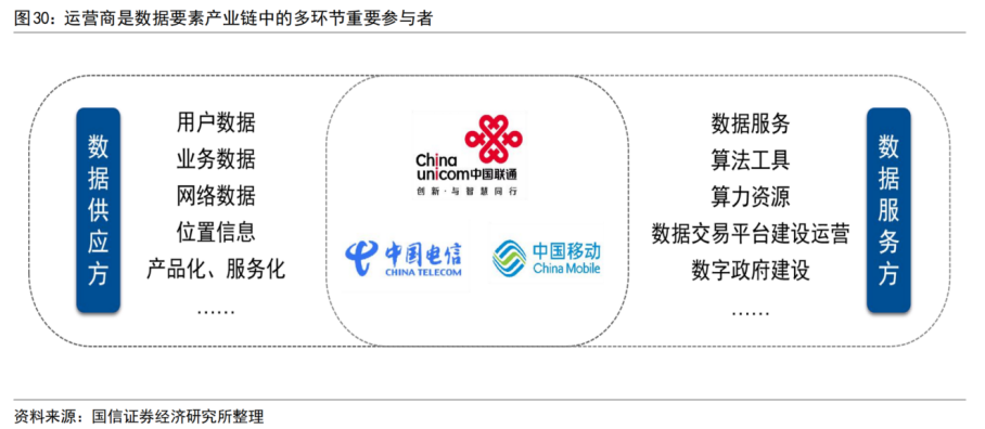 运营商还是数据要素市场众多环节的参与者,将充分受益于数据要素市场的发展和利润分配。
