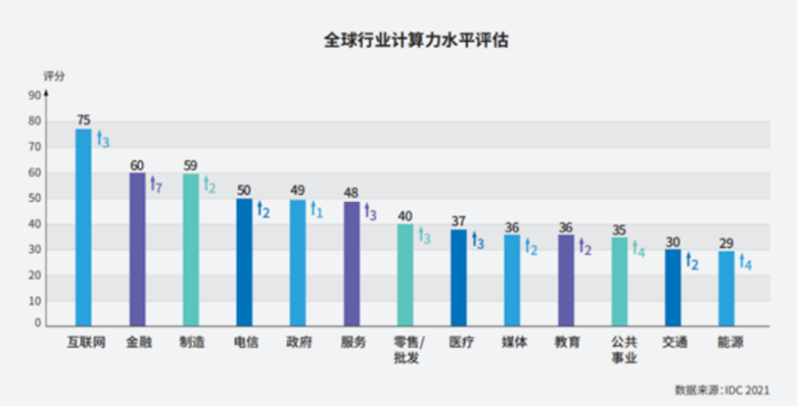 根据全球行业算力水平评估排序来看,排名前五的行业分别为:互联网、金融、制造、电信和政府。特别是互联网、金融和制造行业在算力投资和AI投资中均位列前位。