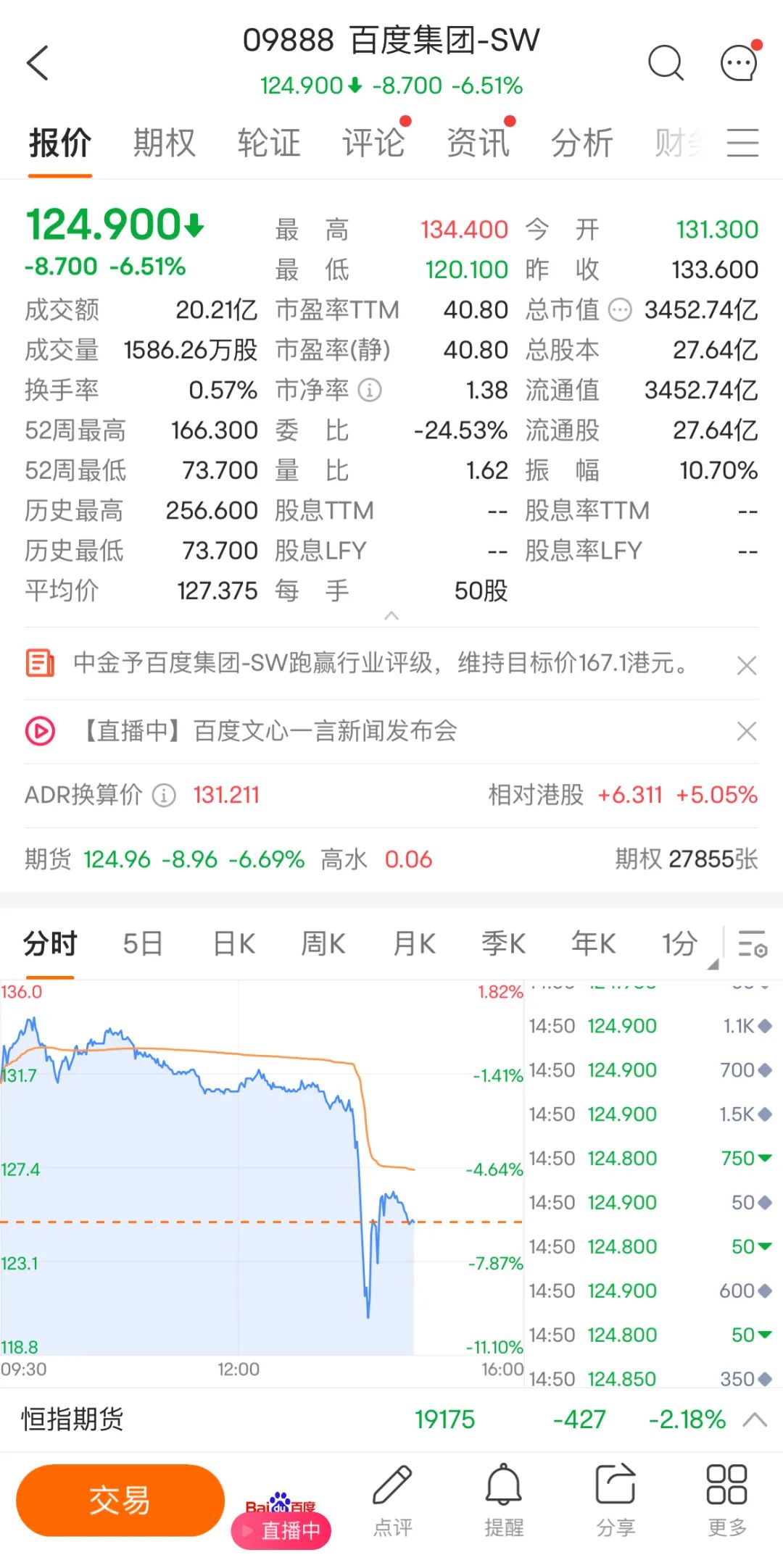 实际上,很多从业者并没有对百度抱有太高的预期。就在发布会开始后不久,百度的股价最高跌去了10%。