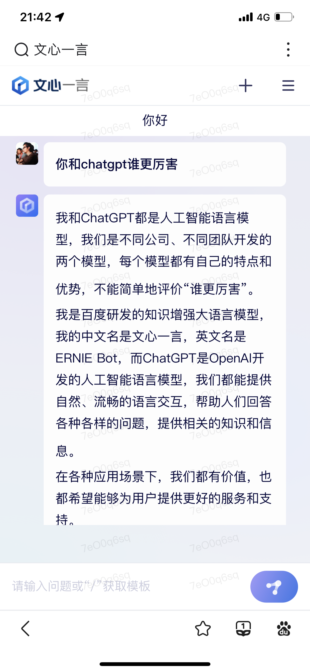 圈内不少人都知道,百度的文心一言实际上对标的是OpenAI在去年11月底发布的ChatGPT 3.5版本。李彦宏也在发布会上直言:对标ChatGPT甚至GPT-4,门槛是非常高的。但即便如此,百度仍然是全球第一个竖起对标ChatGPT旗帜的企业。