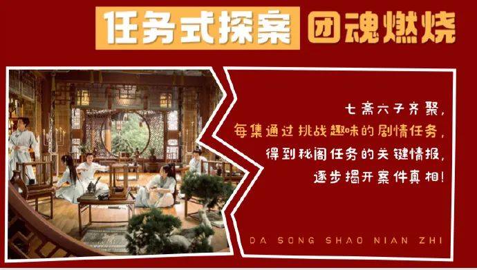因白鹿、张凌赫曾被传恋情,《宁安如梦》团综的核心看点还是古偶CP再营业。《大宋有个探案局》则不同,由于《大宋少年志》本身就是以“七斋少年成长史”为叙事核心的大群像戏,其衍生综艺的“团综感”会更强。