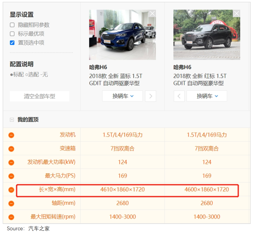 哈弗H6的红标车型定位主流家用人群,体现的是豪华和经典;蓝标车型号称炫酷、时尚,瞄准年轻消费群体。