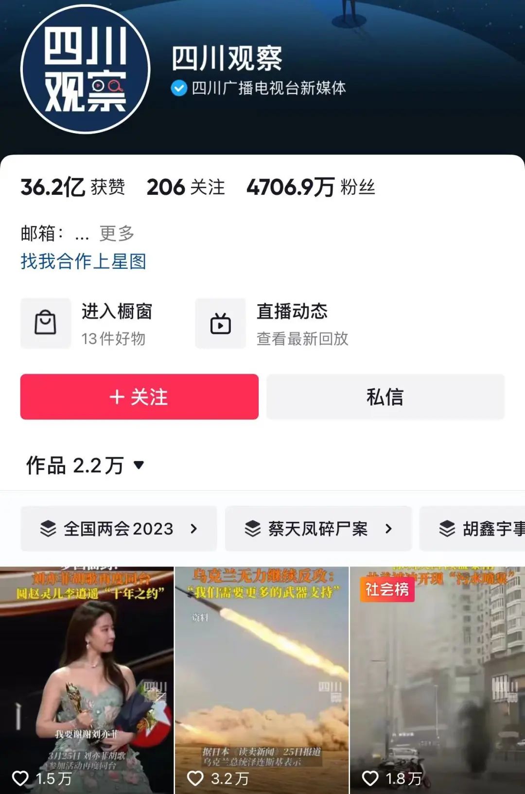 譬如,“融媒体”大旗下,确实有不少带着传统媒体背景的“新晋网红”与时代共进。隶属于四川广播电视台的“四川观察”,其抖音粉丝超过4700万,其策划的内容多次登上热搜榜。不同于其他地方媒体以本地新闻为主的传统思路,“四川观察”发布的内容从国际形势新闻到搞笑娱乐视频,无所不包,也被网友戏称为“四川观察,四处观察,就是不观察四川。”