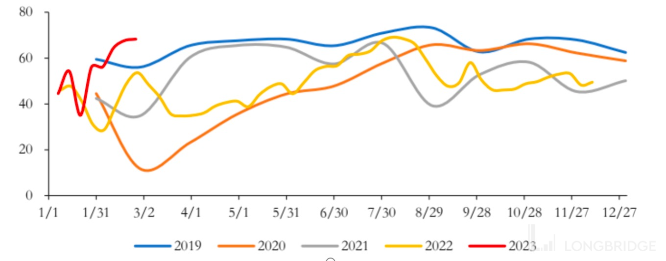 不仅在去年三季度小旺季来临紧紧抓住机会,四季度的表现也是在逐月改善(10 至 12 月分别超过 2019 年同期的 7 成、8 成和 9 成,行业普遍在 6 成左右),更是在今年春节期间就达到了 2019 年同期的 95%。