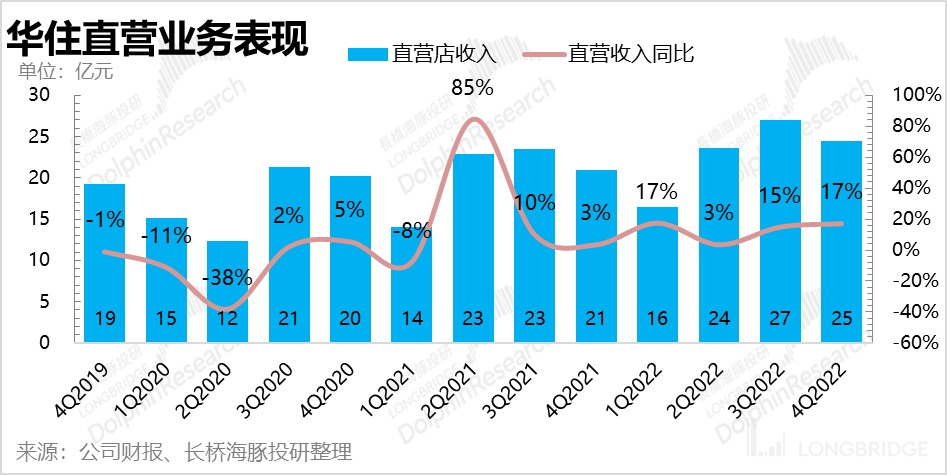 直营业务四季度的表现情况还算是不错,达到了 17% 的增长水平,要快于公司整体表现,也略高于市场预期。