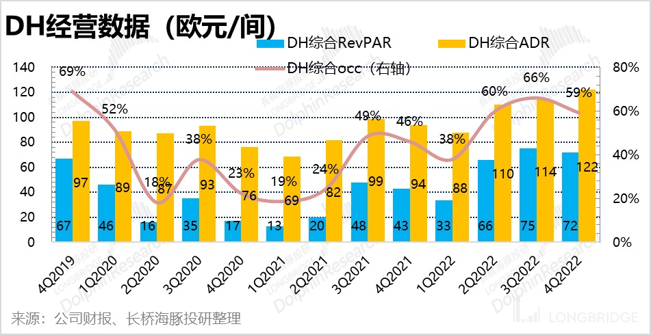 过去半年,海豚君一直在跟踪行业及重点公司的 RevPAR 恢复水平,华住表现的也确实可圈可点。作为酒店行业龙头,尽管四季度国内的经营环境对整个酒店板块来说非常不友好,但是公司的表现得非常坚韧。