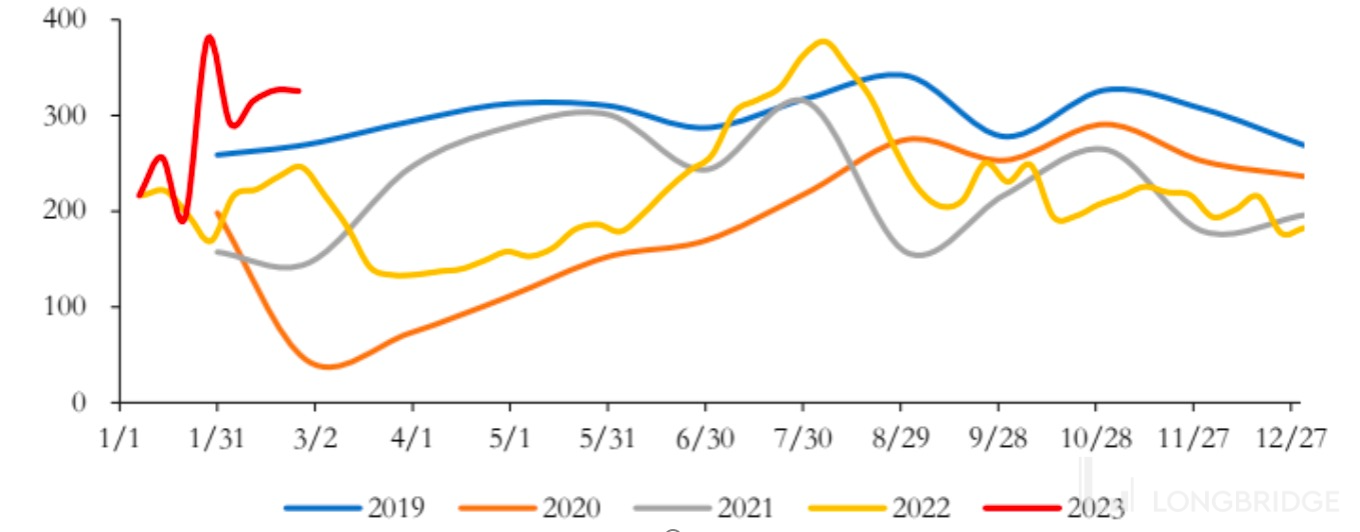 从最近的跟踪数据来看,华住 1-2 月份的 RevPAR 水平至少恢复到了 2019 年同期的 120%,二月份更是恢复到同期 140%。推算下来,华住三月份的恢复情况将更为强劲。而且未来逐步进入酒店业旺季,商务活动逐渐频繁,以及四季度的低基数,这样的修复情况至少可以维持到年底。