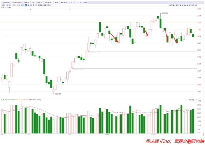 本周首个交易日三大指数虽然全部低开,但是分化严重。上证指数最低下探到3230左右,最终收在3250点上方。从今年以来,这种“大长腿”式的形态预计后期会继续调整,持续时间在2-4天。