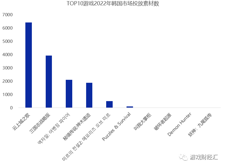 8、投放素材量:《云上城之歌》、《三战》投放居前