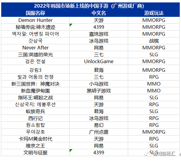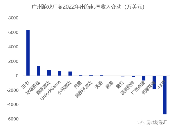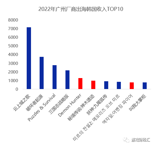广州游戏厂商2022年在韩国市场的表现优于日本市场。