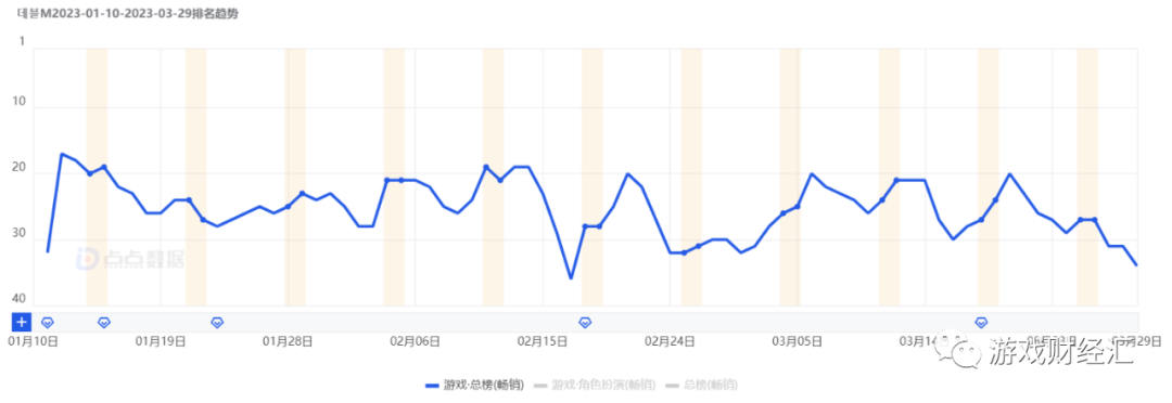 图:《데블M》在韩国市场上线以来的排名情况;来源:点点数据