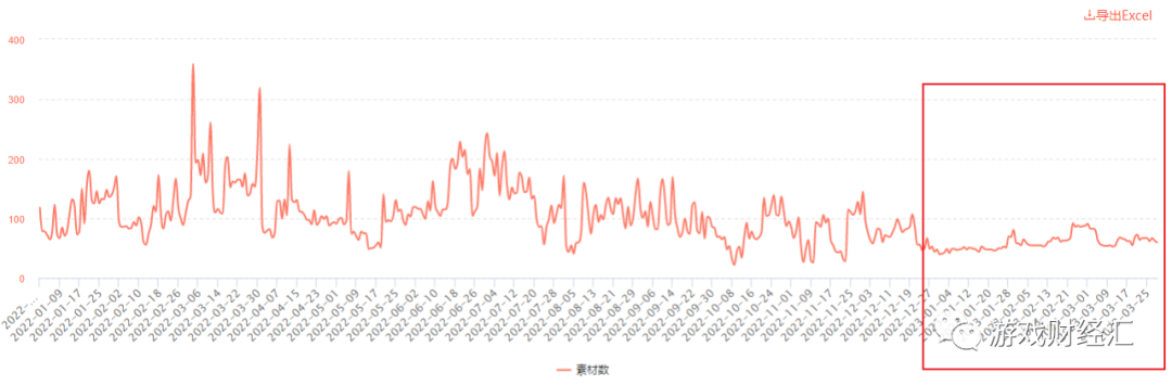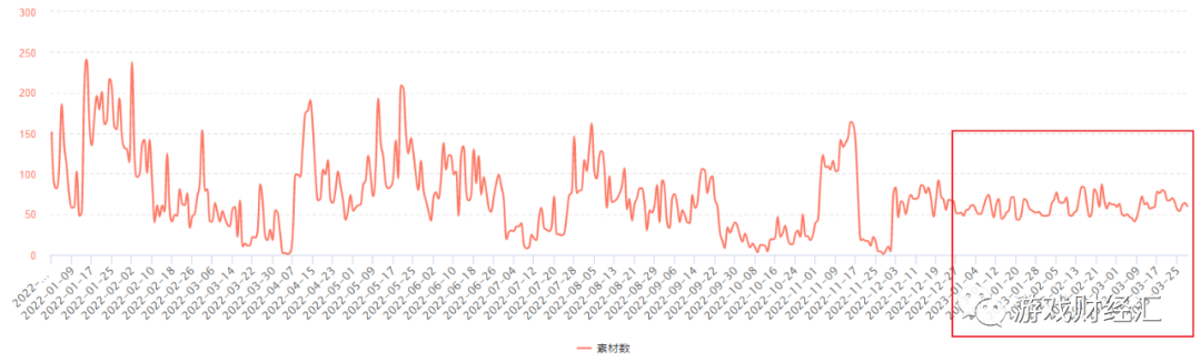 23Q1,《云上城之歌》素材投放量仅相当于22Q1的1/10。