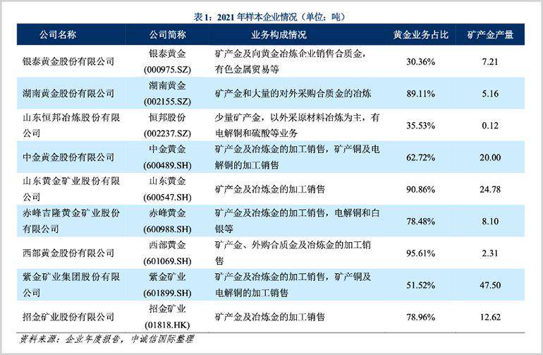 紧随其后的是山东黄金,2022年黄金产量预计约40吨;中金黄金2021年矿产金产量20吨,仍然是大幅落后于前两大龙头。