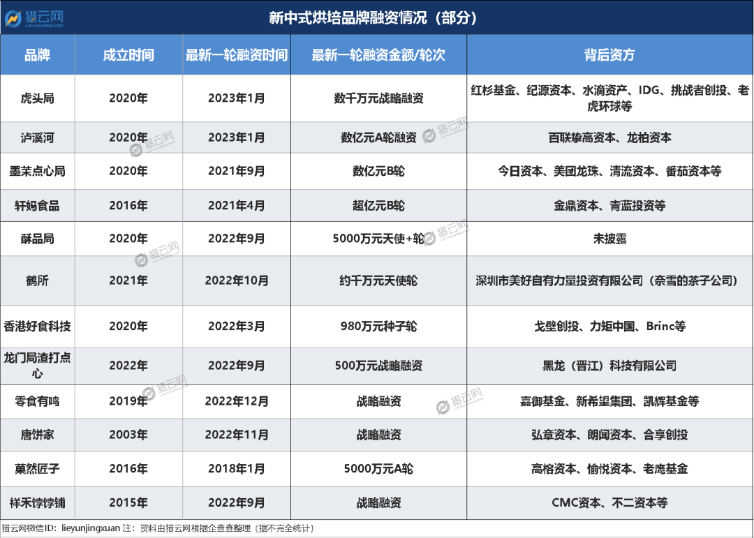与这两位“新中式烘焙”前辈融资暂停、缩店相比,赛道里新玩家却更热闹一些,龙门局渣打点心、KUMO KUMO、鹤所等,皆在2022年首次获得融资。值得注意的是,就在今年年初虎头局融资宣布期间,泸溪河也宣布获得了其首轮融资——百联挚高资本、龙柏资本在A轮投资了数亿元,且在40多个城市有超360家直营门店,直接超车。