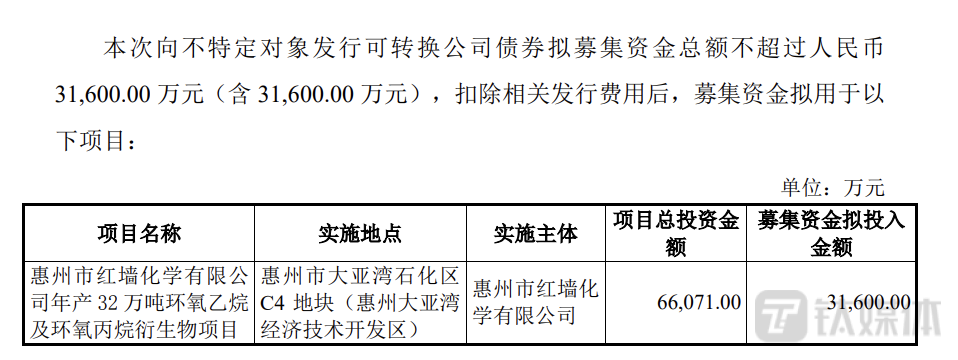 钛媒体APP发现,2023年3月21日,红墙股份将发行方案进行了调整,将此前募资金额5.6亿元调整为3.16亿元。3.16亿元募集资金全部用于年产惠州市红墙化学有限公司32万吨环氧乙烷及环氧丙烷衍生物项目(下称惠州项目)。红墙股份公司目前以聚羧酸系外加剂、萘系外加剂为主导产品,根据下游客户的实际需要提供定制化混凝土外加剂产品,惠州项目预计增设聚羧酸减水剂生产线及其原材料聚醚单体与丙烯酸羟基酯生产线。可见,公司此次募资目的是扩充主营产品生产量。