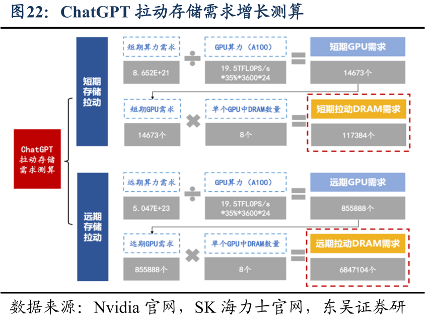 图: ChatGPT拉动存储需求测算图示,来源: 东吴证券研究所