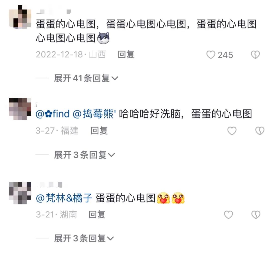 《蛋仔派对》中也有典型,歌曲《滴滴答心电图》因歌词空耳听上去很像“蛋蛋的心电图”,于是成为了抖音中大量《蛋仔派对》二创视频的“御用BGM”。但实际上歌曲背后有着一个非常悲伤的背景故事,并不适合用于欢快的视频当中,于是不少人在抖音相关视频下予以科普,但仍然无法阻止其以“蛋蛋的心电图”之名继续流传。