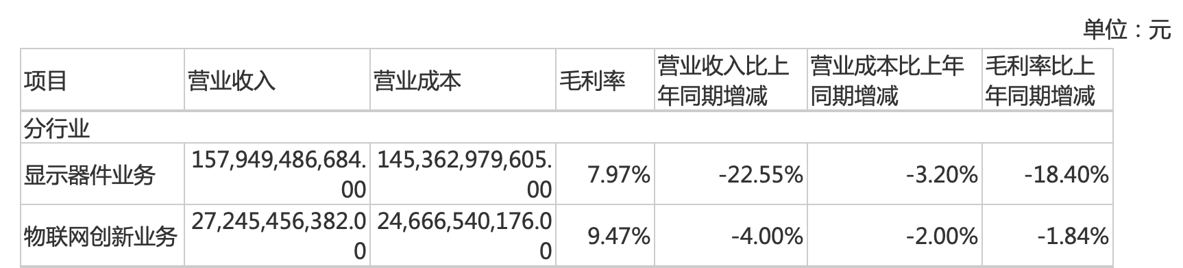面板行业整体业绩萎靡,龙头京东方也难以幸免。