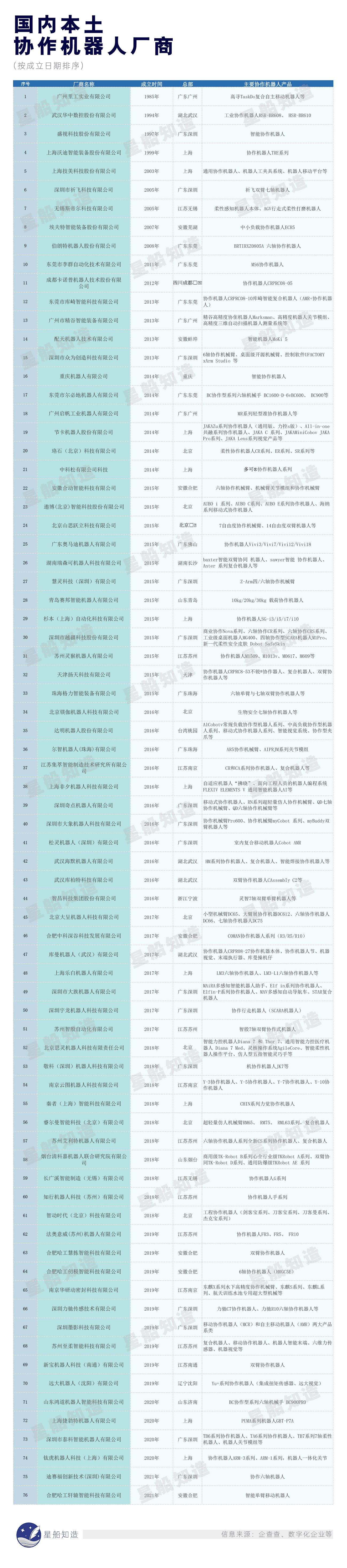 截至2019年7月,全球协作机器人厂商数量已经超过100家,其中进入中国市场的超过70家。
