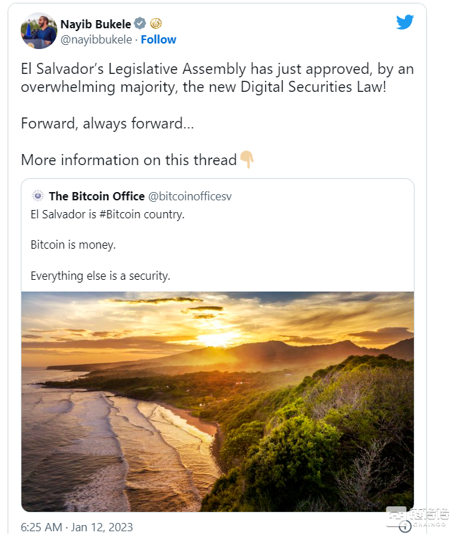 这次的牌照发放,法律依据是萨尔瓦多2023年1月通过的《数字资产发行法》(Law on the Issuance of Digital Assets),该法于 1 月由萨尔瓦多国民议会高票通过(84个席位62票赞成)。本法案还设立了国家数字资产委员会,该监管机构负责应用证券法,保护萨尔瓦多数字资产购买者和发行人的权利。
