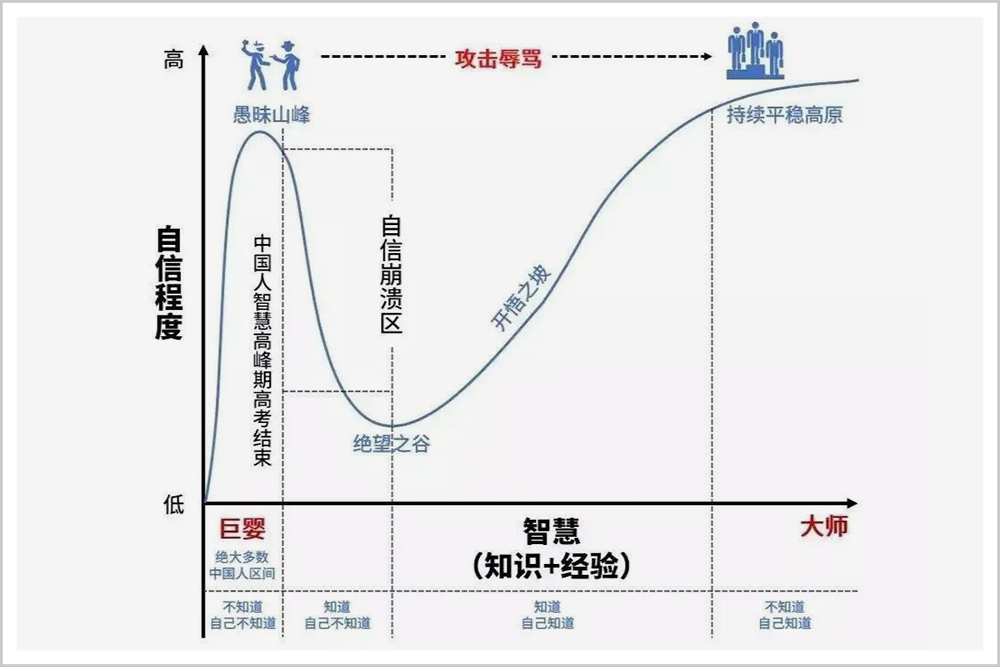 有担当的管理者,应该把下属从“愚昧之巅”推下“绝望之谷”,至于对方能不能靠自己爬上“开悟之坡”,那就全看个人的造化了。