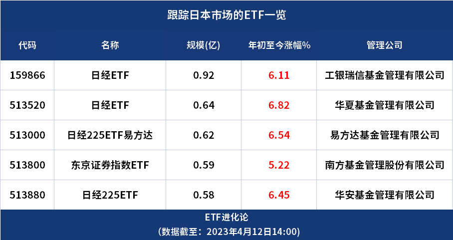 A股市场目前有5只跟踪日本市场的ETF,规模都不大,最大的日经ETF最新规模0.92亿。