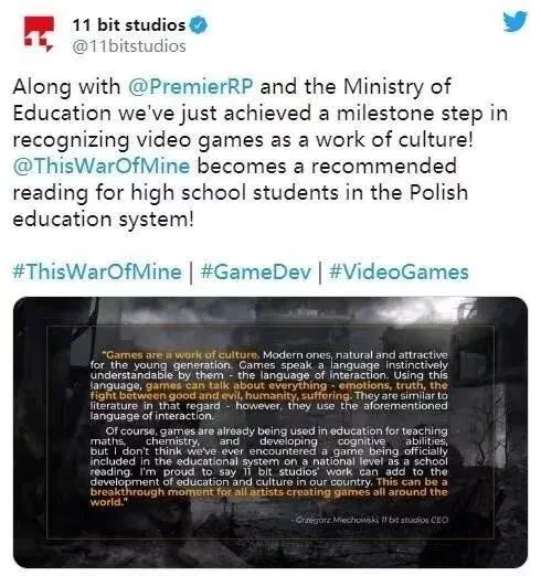 在某些国家地区已有改变,比如去年波兰游戏《这是我的战争》被波兰教育局列入了“中学课外补充读物”。不过鉴于电子游戏本身短暂的历史,大部分国家离“游戏艺术”的理想接受状态还比较遥远。
