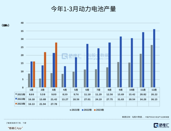 今年1-3月,累计产量130.0GWh,累计同比增长26.3%;累计销量达108.5GWh,累计同比增长66.8%。