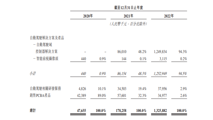 据了解,知行科技收入主要来自销售自动驾驶解决方案及产品、自动驾驶相关研发服务、PCBA产品,自动驾驶解决方案及产品细分为自动驾驶控制器解决方案及智能前视摄像头。