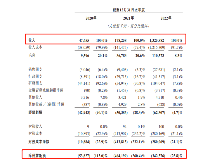 数据显示,2020年至2022年,知行科技实现营业收入分别为4765.5万元、1.8亿元、13.3亿元,2022年营收同比增幅高达643.8%。