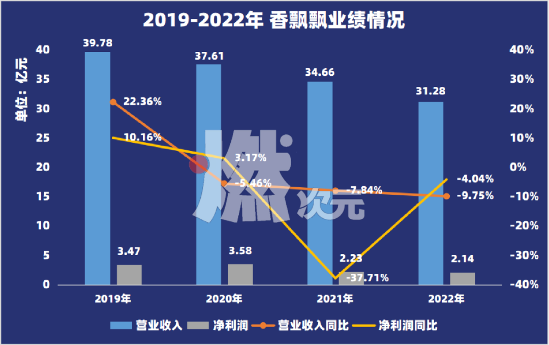 图/2019-2022年香飘飘业绩情况 数据来源/香飘飘历年财报 燃次元制图