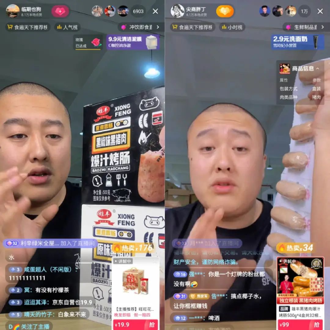 相比之下,也狗和胖丁则趁热打铁在账号热度攀升时开启直播带货。