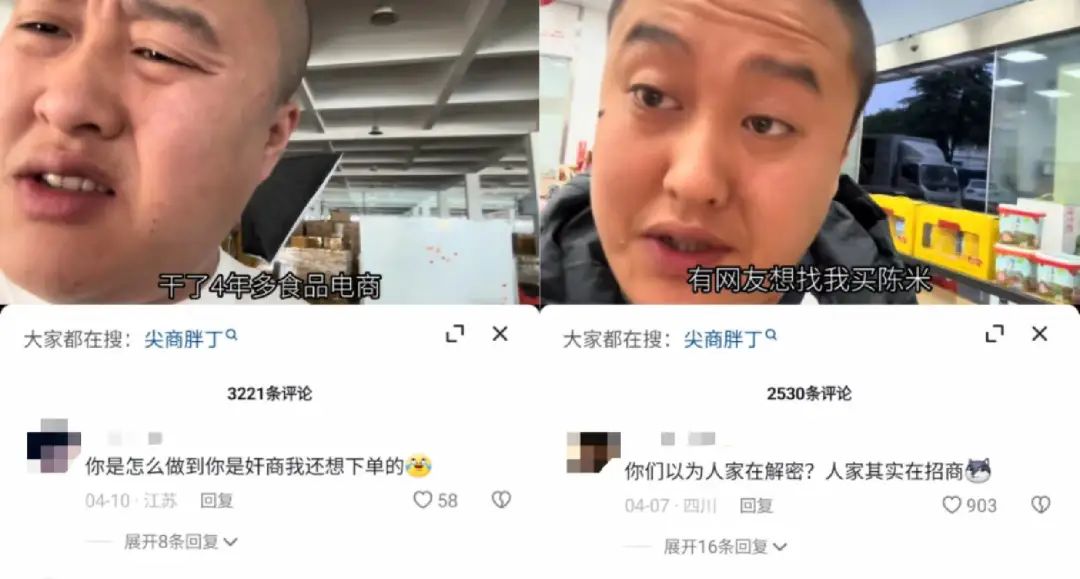 视频结尾,二人总会再次强化身份,“散会吧兄弟们,我叫也狗,一个食品贩子。”“我是胖丁,你的好兄弟,同行的大克星。”并留下买东西要仔细看日期、挑货架内侧商品等知识点。