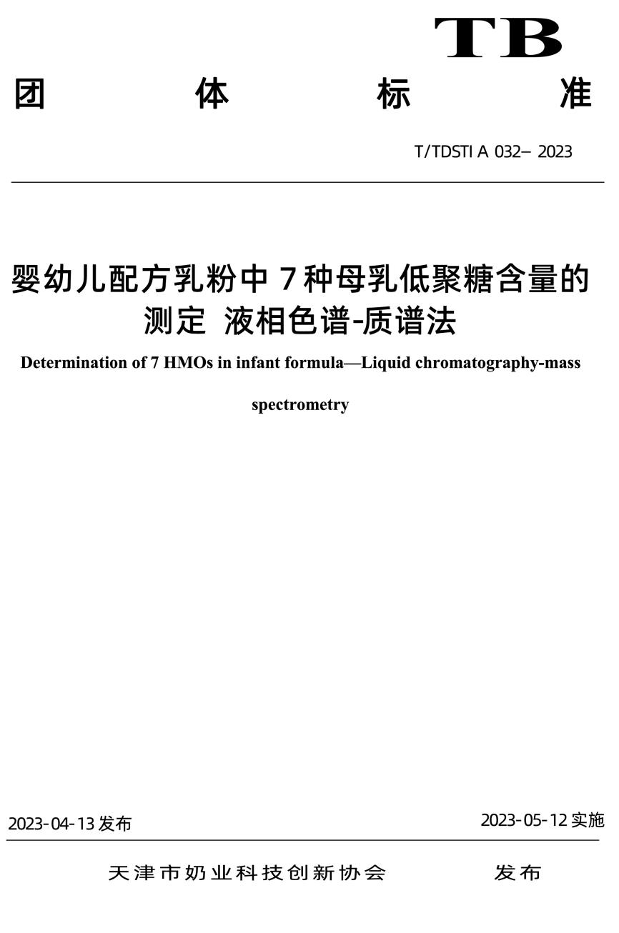近日,《婴幼儿配方乳粉中7种母乳低聚糖含量的测定-液相色谱质谱法》团体标准发布,该标准由中国飞鹤牵头,国家奶业科技创新联盟等单位共同完成制定,是国际首个母乳低聚糖(HMO)的检测方法标准。