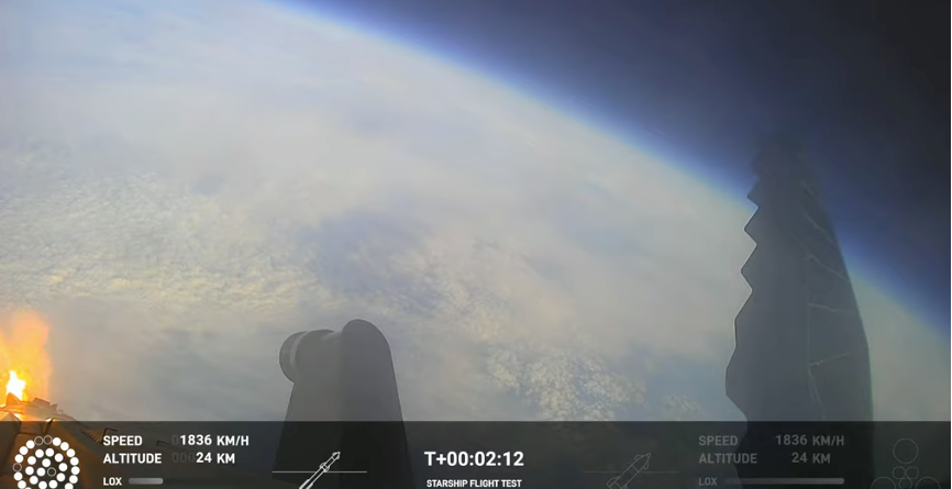之后,星舰不断加速,时速从100多公里/小时一路飙升至超过2100公里/小时,高度一路冲破3万千米。从星舰上配备的摄像头向下望去,已经能看到地球的轮廓。