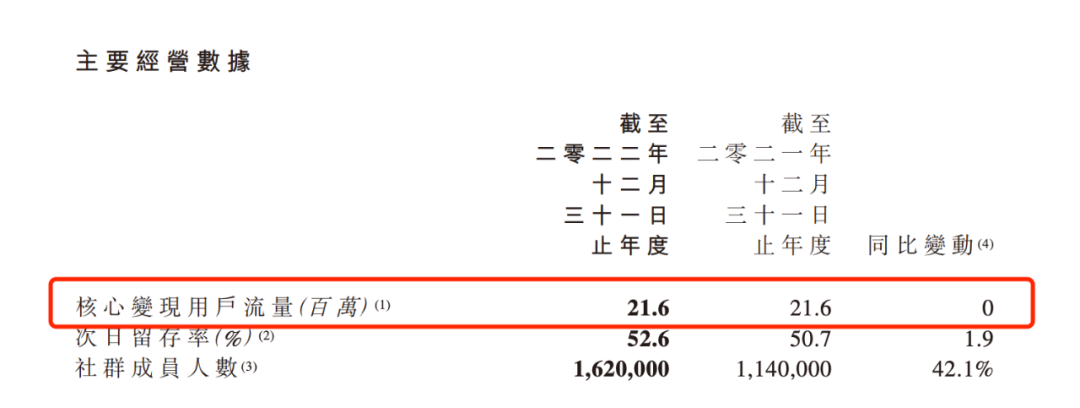 宝宝树2022年核心变现用户流量,图源宝宝树财报