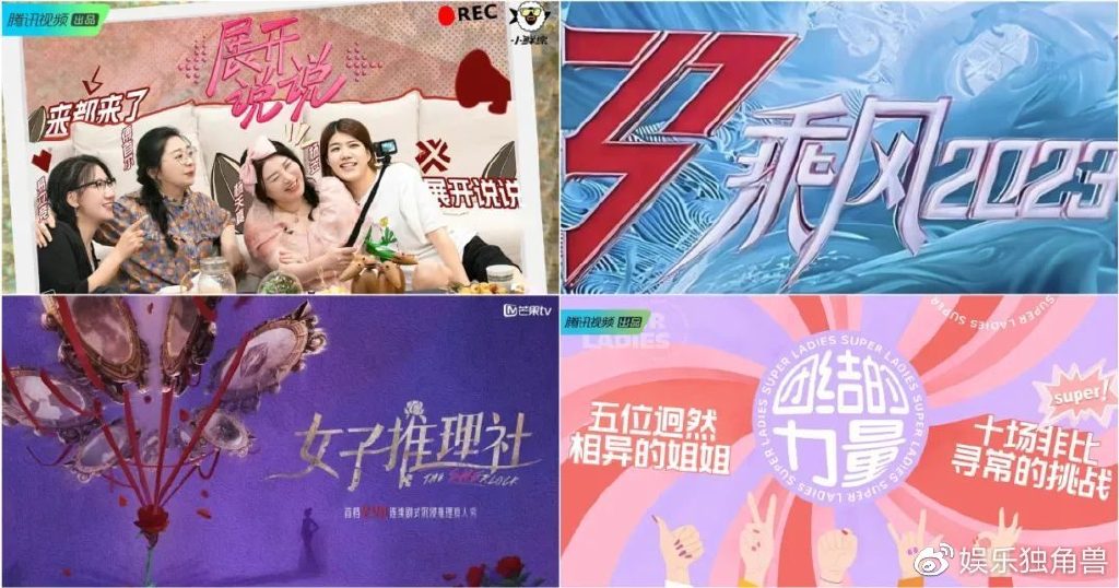 这也是今年平台押注的一大题材类型。《女子推理社》之外,据不完全统计,仅Q2在播和待播的女性群像综艺还包含了《展开说说》《乘风2023》《漂亮的战斗》《花花嘻游记》《团结的力量》《求职高手女性职场季》等,其中不乏一些嘉宾阵容亮眼、题材有新意的平台头部项目。