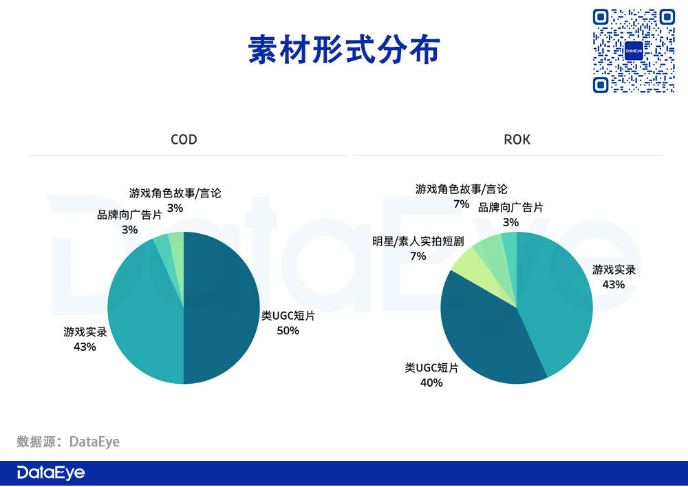 ROK:【类UGC+游戏实录】两形式约占总体83%,相比《万龙觉醒》有7%【明星/素人实拍】。