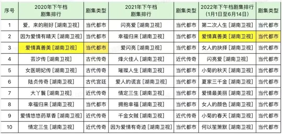 毒眸就曾在《夏家三千金》,还在霸占你妈妈的遥控器一文中写道:近三年的湖南卫视下午档,收视率TOP10几乎都被70+集数的长剧占据。这些长剧涵盖了出轨、谋杀、商业、失忆、车祸等剧情;女主角通常是出淤泥而不染的“白莲花”,即使被多次伤害甚至要失去性命,还是会选择原谅。