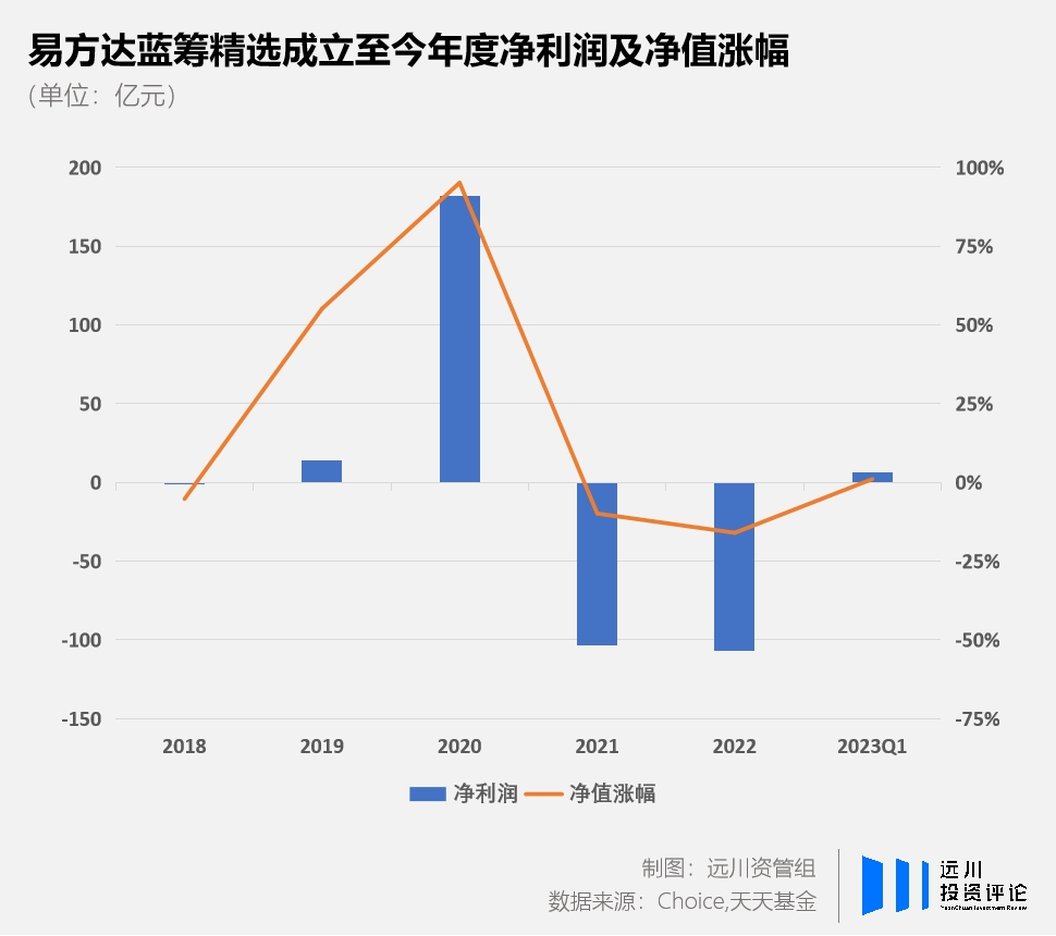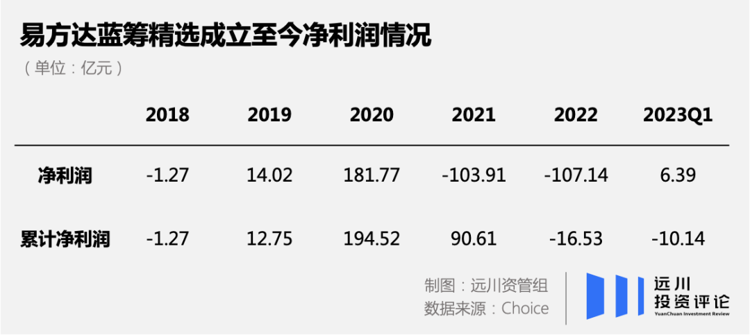 过去的两个自然年,易方达蓝筹精选成立以来的利润却由盈转亏。尽管从净值增长层面来看,易方达蓝筹精选成立至今的累积回报为108%,年化回报也依然高达17.14%,但「基金赚钱,基民不赚钱」的行业痛点,依然没有得到解决。