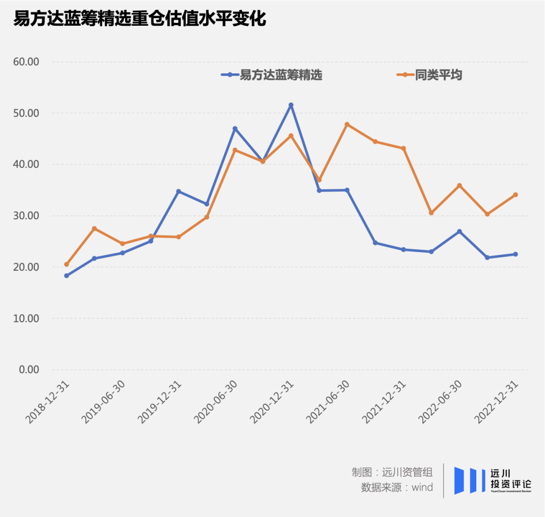 易方达蓝筹精选的重仓股平均市盈率从2020年年末高点持续回落